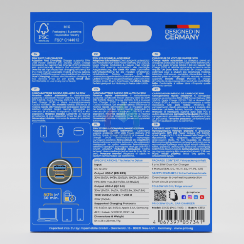Progettato in un formato pratico e compatto, il 50% più piccolo dei caricabatterie standard da 30 W. Include tutti i meccanismi di protezione necessari per garantire un utilizzo sicuro.